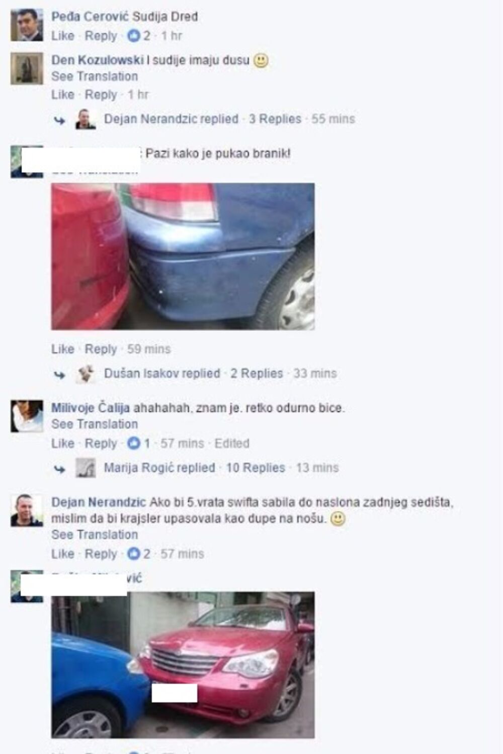 Fotke na Fejsu zaista prikazuju da je oštetila druge automobile, a iz nekog razloga, korisnik je fotografije uklonio s svog profila.