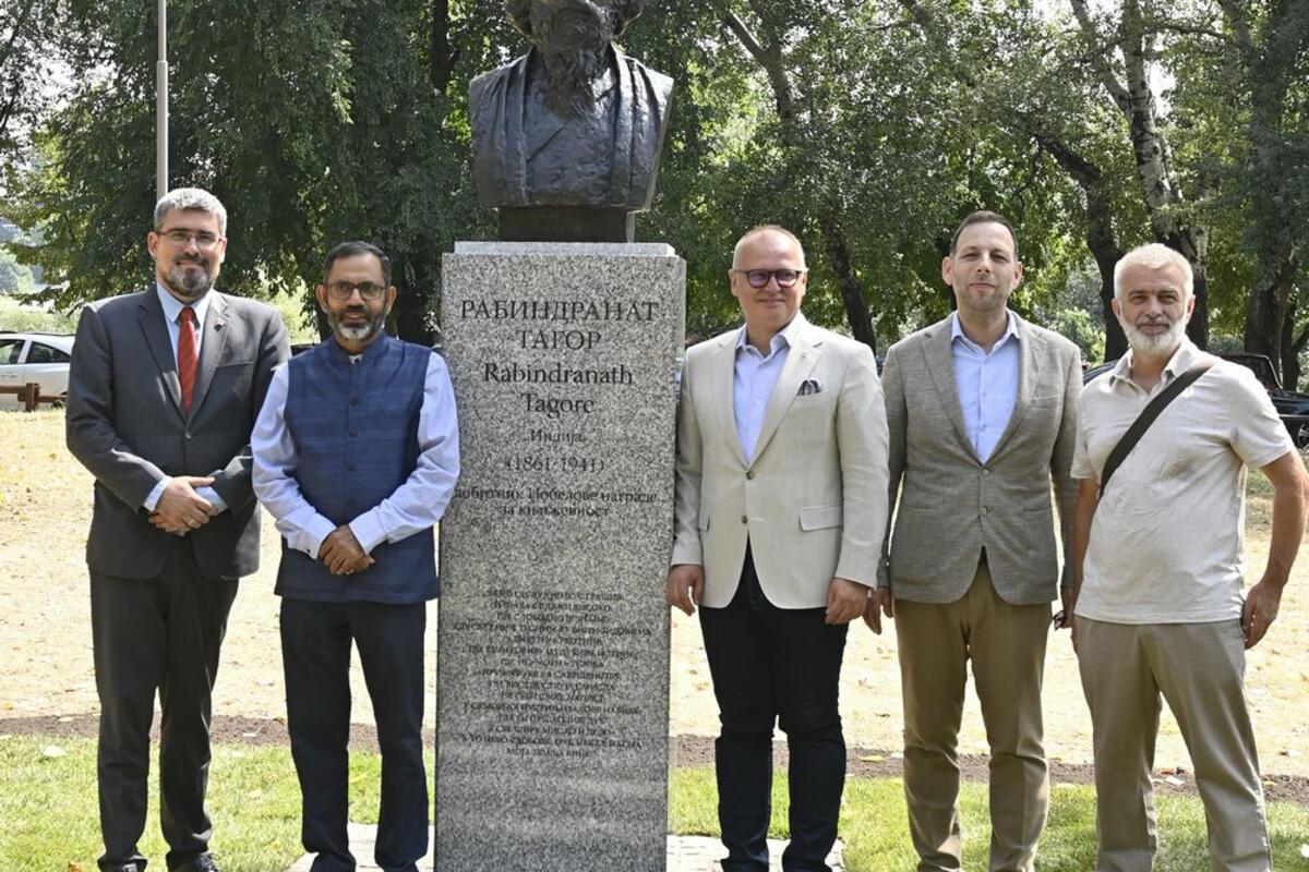Zamenik gradonačelnika Beograda Goran Vesić i ambasador Indije u Srbiji Subrata Batačardži otkrili su danas spomenik indijskom književniku, dramaturgu i filozofu Rabindranatu Tagoreu u beogradskom parku Ušće, u blizini Brankovog mosta.