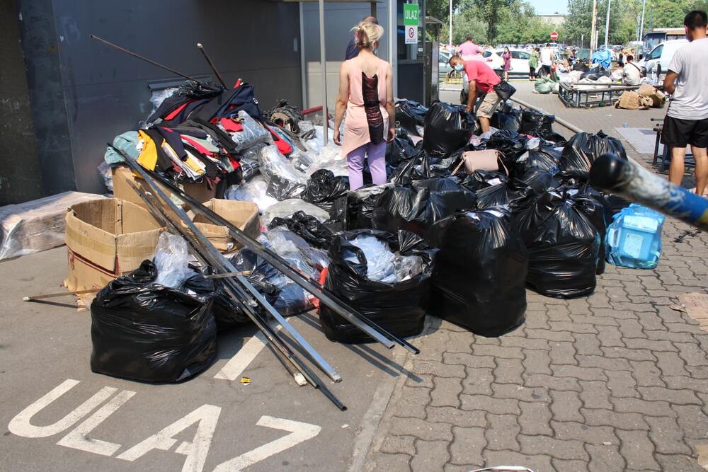 Sve stvari koje su uspeli da iznesu su spakovali po džakovima i kutijama koje su odložene na jednu veliku gomilu.