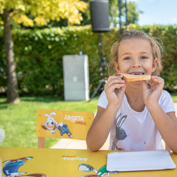 Iako su tokom čitavog programa mogli da se posluže Argeta Junior namazima, zvanična Argeta pauza za ručak usledila je taman na vreme, posle tri sata vežbanja i seckanja. Klinci su uživali u sendvičićima sa Argeta Junior namazima blagih i prijatnih ukusa. Ovim obrokom obradovali smo i roditelje jer se namazi Argeta Junior, koje su se služile deci, prave bez konzervansa, veštačkih boja i pojačivača arome.