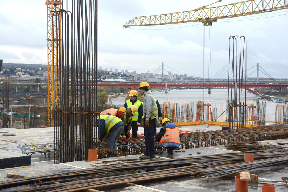 Da bi ispoštovali zacrtane rokove, na gradilištu se svakodnevno nalazi oko 450 radnika koji rade u tri smene i trude se da ovo zdanje izgleda baš onako kako su ga projektanti i zamislili. Iz ekipe BG na vodi sa ponosom su nam rekli da na ovoj građevini rade isključivo srpske firme. I materijali koji se ugrađuju u nebodere su proizvedeni u Srbiji.