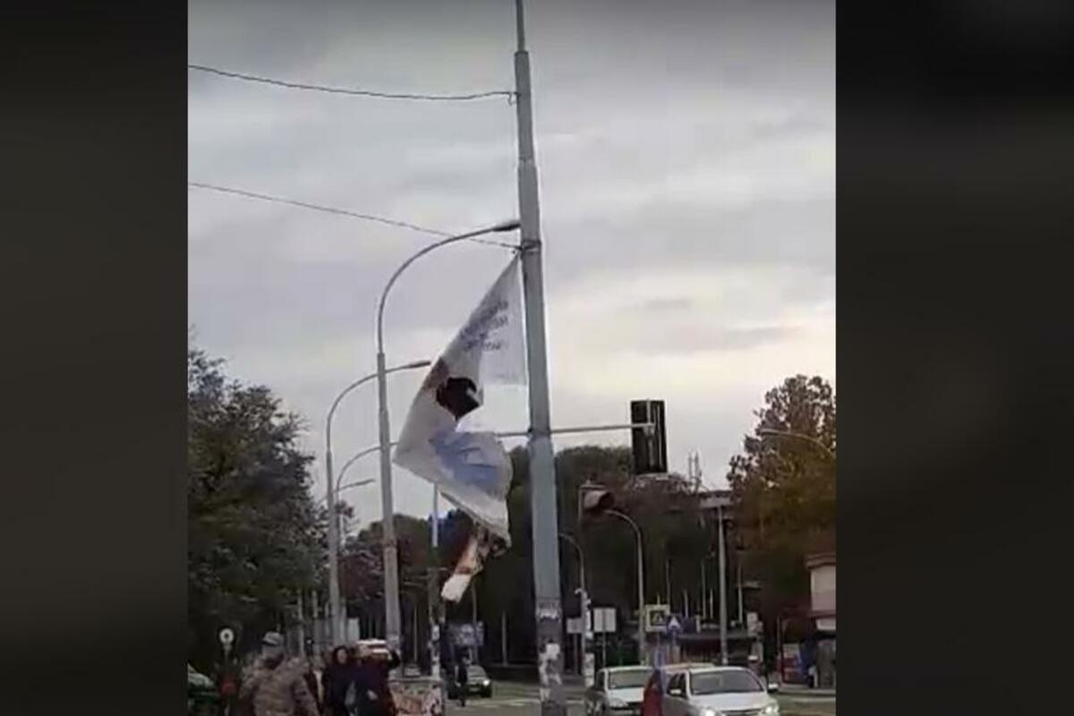 OTKAČILA SE REKLAMA NA NOVOM BEOGRADU! Pravi veliku POMETNJU u saobraćaju, a na PROMETNOJ je raskrsnici! (VIDEO)