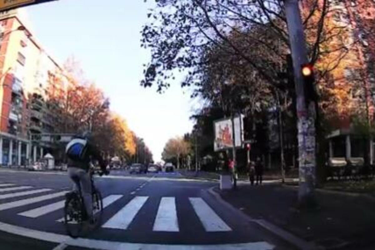 Na društvenoj mreži Tviter objavljen je snimak na kome se vidi biciklista koji bez pardona prolazi kroz crveno na prometnoj raskrsnici u Beogradu.