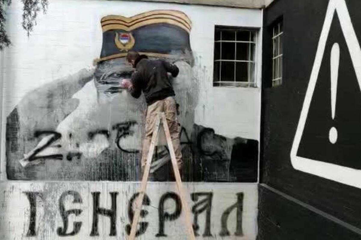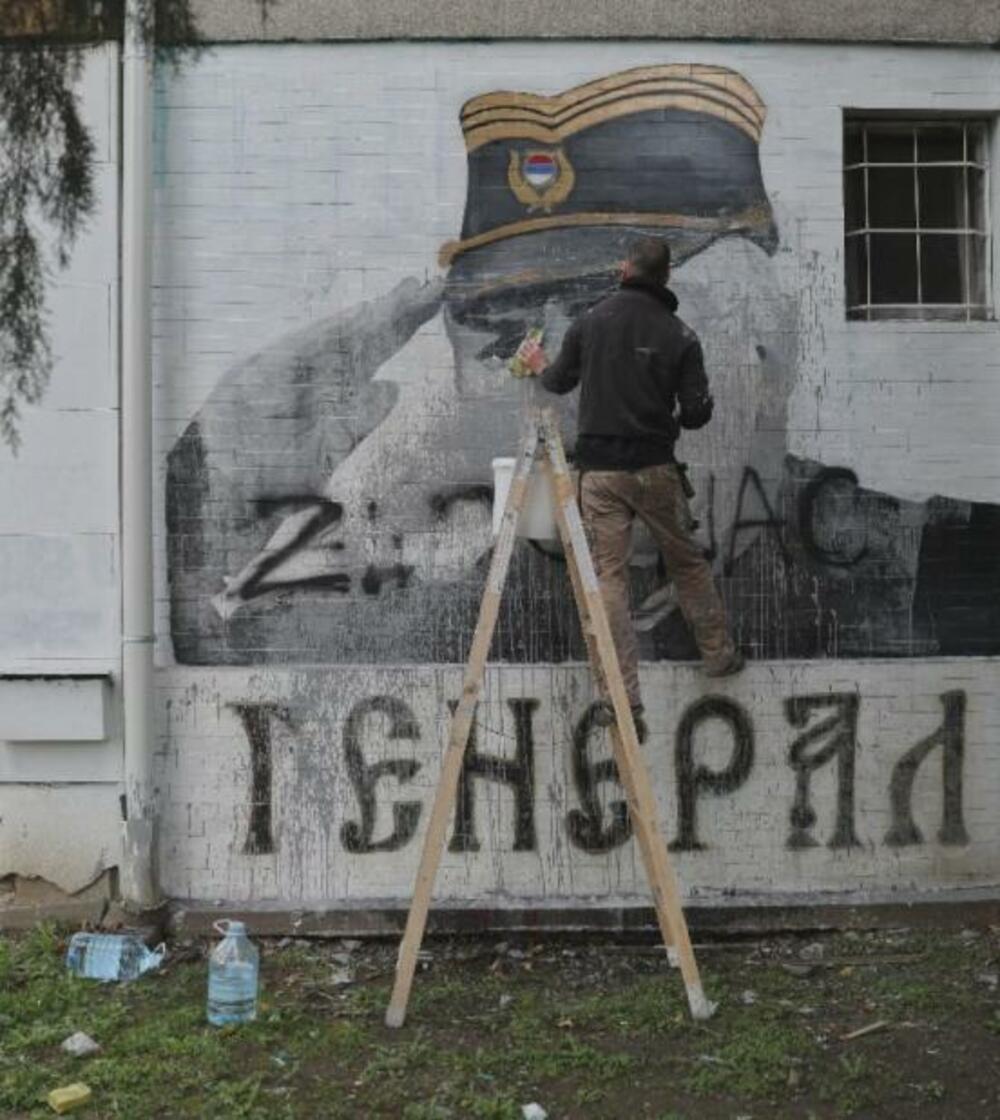 UNIŠTEN JOŠ JEDAN MURAL RATKU MLADIĆU: Ižvrljan i GRAFIT na Novom Beogradu, ispisano "ZLOČINAC" (FOTO)
