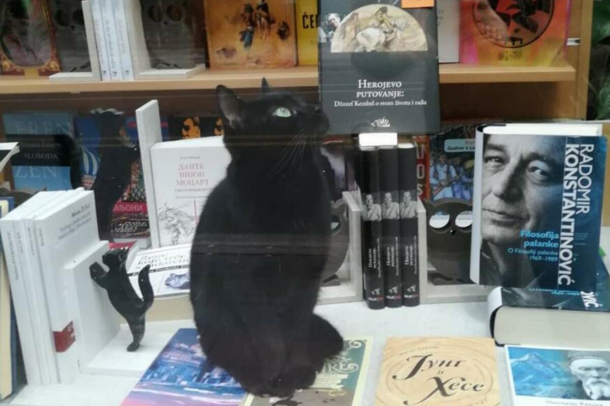 CRNA MACA POSTALA HIT U BEOGRADU! Sedi u knjižari među knjigama, pozdravlja prolaznike, živi kao CAR! (FOTO)