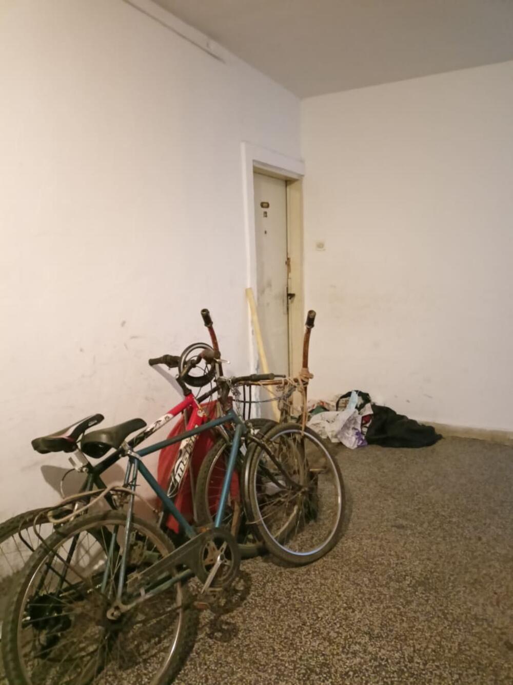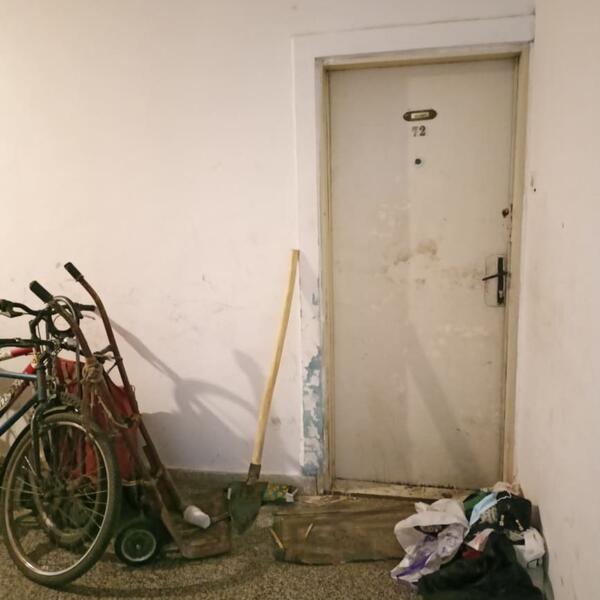 Ispred vrata stana nalaze se dva bicikla i nešto otpada, dok nismo mogli da ne osetimo smrad koji se širi hodnicima, a dolazi iza vrata Zoranovog stana.