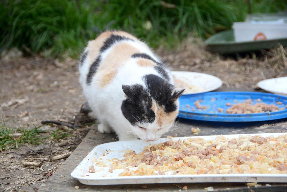 Veliki poslužavnik pun je čantrica sa hranom. Tu je i voda, kad krznene lepotice ožedne.