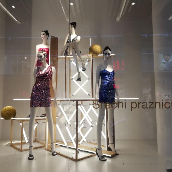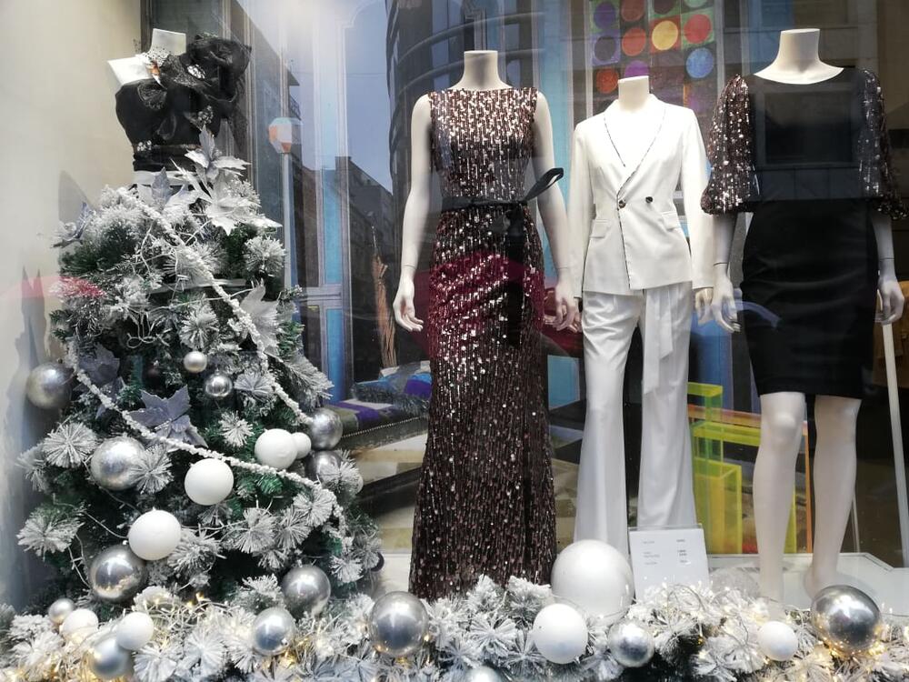 Većina butika specijalno je dekorisala svoje izloge. Osim pažljivog izbora boja i odevnih kombinacija, i natpisima su poželeli srećne praznike.