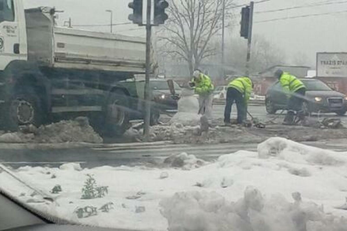 Fotografija je objavljena na Tviteru, a korisnica društvene mreže navela je u opisu da su dvojica radnika popravljali stub semafora, a da je treći popravljao Sneška Belića.