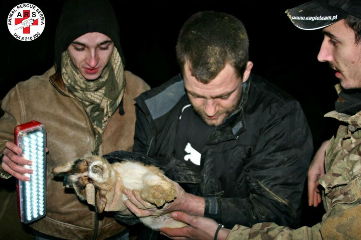 – Najpre smo pokušali da kucu „upecamo” tako što ćemo je zakačiti za udove i izvući napolje. Bila je toliko uplašena da bi se skupila kad god bismo je dotakli, pa smo morali da pređemo na plan Be. Kako ne bi došlo do urušavanja, kopali smo drugo okno, paralelno s bušotinom do veće dubine od one na kojoj se štene zaustavilo. Usledilo je horizontalno kopanje, kako bismo povezali dve rupe. Da životinja ne bi propala do dna postavili smo mrežicu od armature. Pošto su ašovi previše oštri i teški, a strahovali smo da ćemo njima povrediti psića, akciju smo dovršili kopkanjem noževima, sve dok ga nismo izvukli – objašnjava Aleksandar Gavrić, vođa spasavanja koje je počelo juče u 17 časova, a završilo se danas oko dva ujutru.