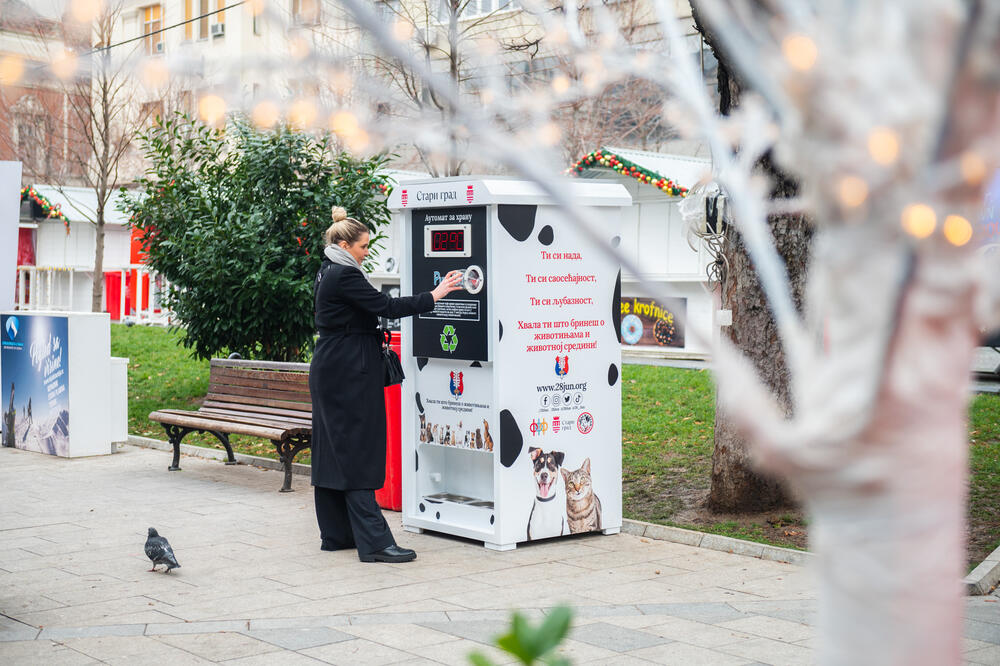 Naime, dva reciklažna automata koji isporučuju hranu namenjenu psima lutalicama postavljeni su u opštini Stari grad u Parku vojvode Vuka na Obilićevom vencu, saopštila je danas humanitarna organizacija 28. jun, koja je i donator automata.