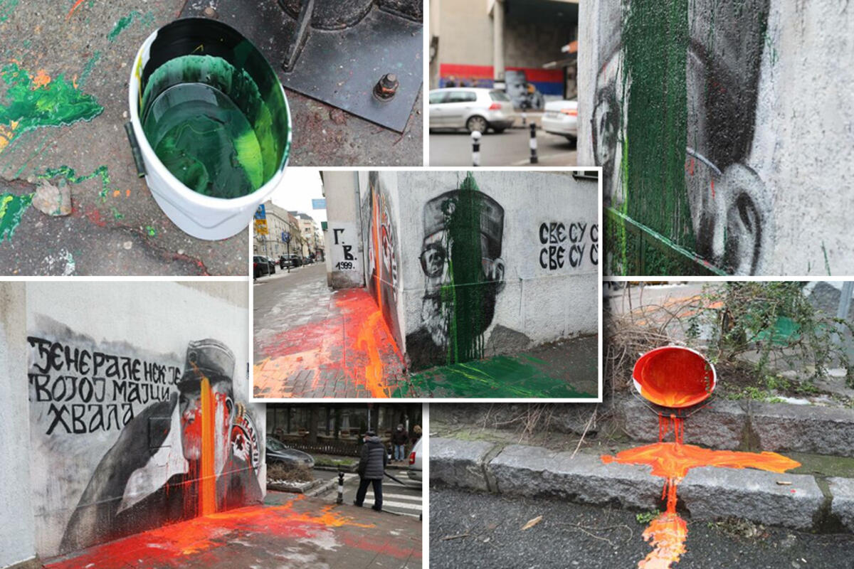 OKUPALI BOJAMA RATKA MLADIĆA I DRAŽU! Uništeni MURALI u Njegoševoj, RAT I DALJE TRAJE, nema POBEDNIKA! (FOTO)