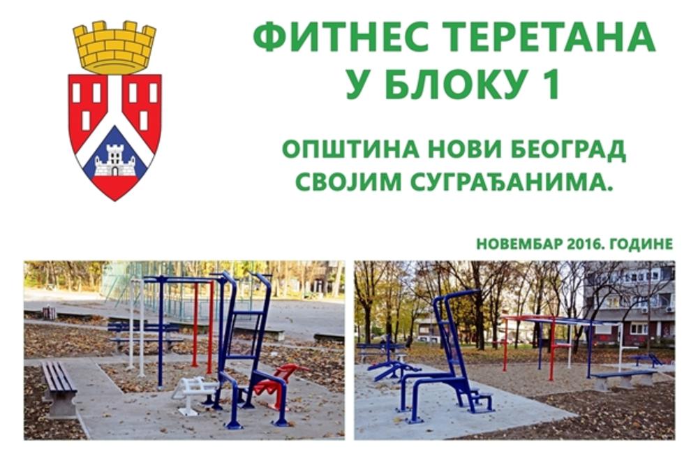 Teretana u unutrašnjosti Bloka 1 urađena je kompletno sa svim spravama za vežbanje. U blizini postojećih sportskih terena unutar Bloka postavljeno je devet sprava fitnes teretane na otvorenom sa svim pratećim urbanim mobilijarom.