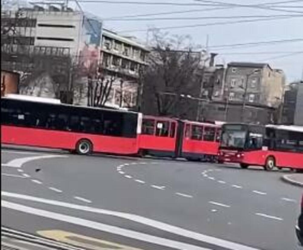 OPŠTI HAOS NA SLAVIJI! Otkačio se tramvaj, žica udarila u autobus (VIDEO)