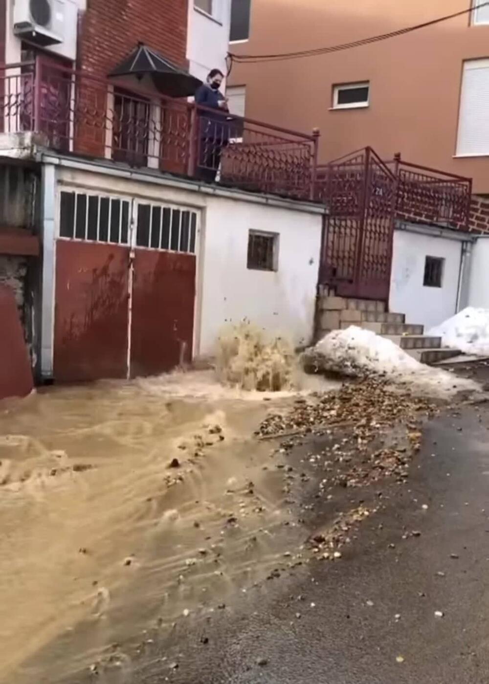 Naime, nadomak jedne kuće, šikljao je mlaz vode, poput gejzira. Voda žute boje se potom sliva dalje niz ulicu, praveći rečicu.