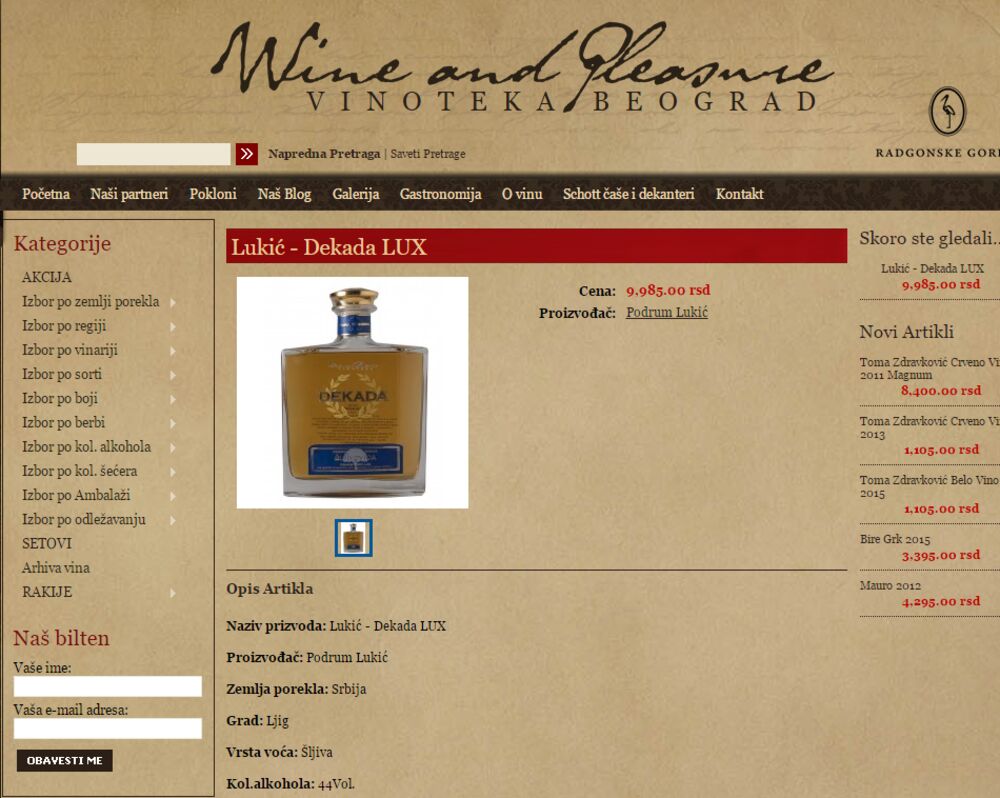 - Cena je jača, to je tačno, ali sa razlogom. Naša rakija Dekada sadrži 12 vrsta destilata i peče se od šljive ranke i požeške. Bure u kojem stoji je hrastovo i mora biti stara najmanje 10 godina - objašnjava naša sagovornica.