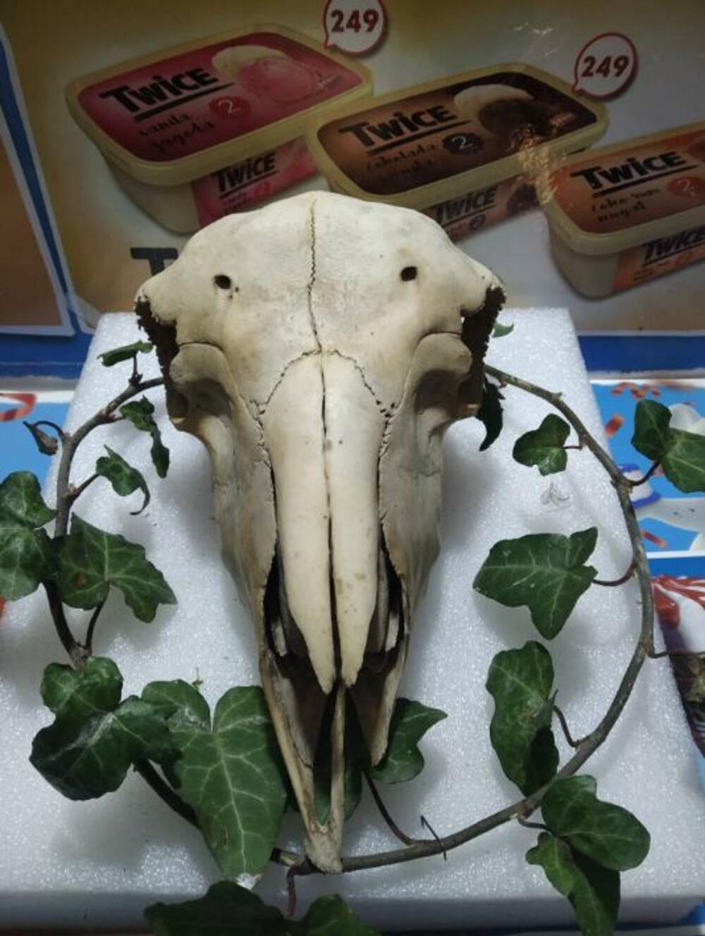 Inače, ovo nije jedina ponuda ovog prodavca, takođe se mogu naći i lobanje ovce, krave, svinje i kanisa. Osim toga, u ponudi je skelet jazavca kao i rogovi srne.