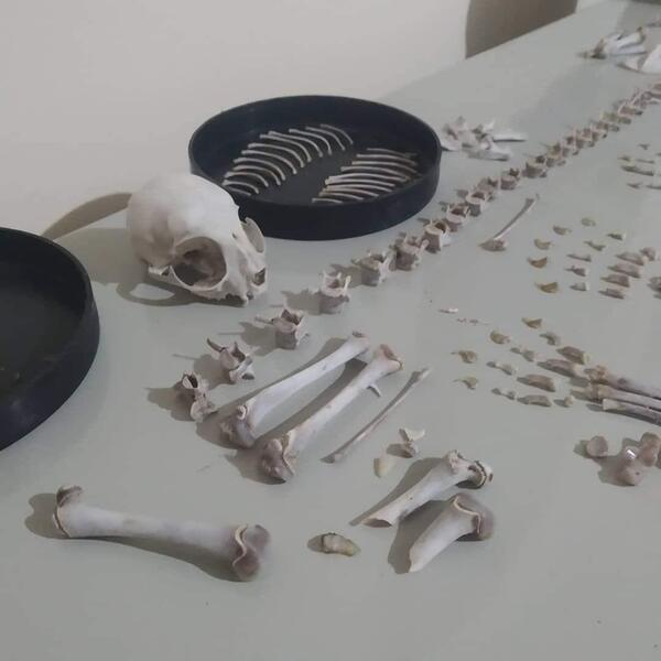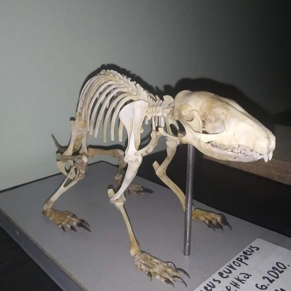 "To je jazavac, pronašao sam ga mrtvog na putu, očistio sam ga, povadio meso, nakon toga sledi proces kuvanja, pa čišćenje hemikalijama i na kraju od tih kostiju sastavljam skelet. Imam dosta knjiga koje me upućuju kako da sastavljam, a sada već imam i iskustva u tome jer sam sastavio baš dosta skeleta različitih životinja. Inače, ceo proces dosta dugo traje, tako da je potrebno vreme da bi se konačno dobio precizno napravljen skelet.", priča on.