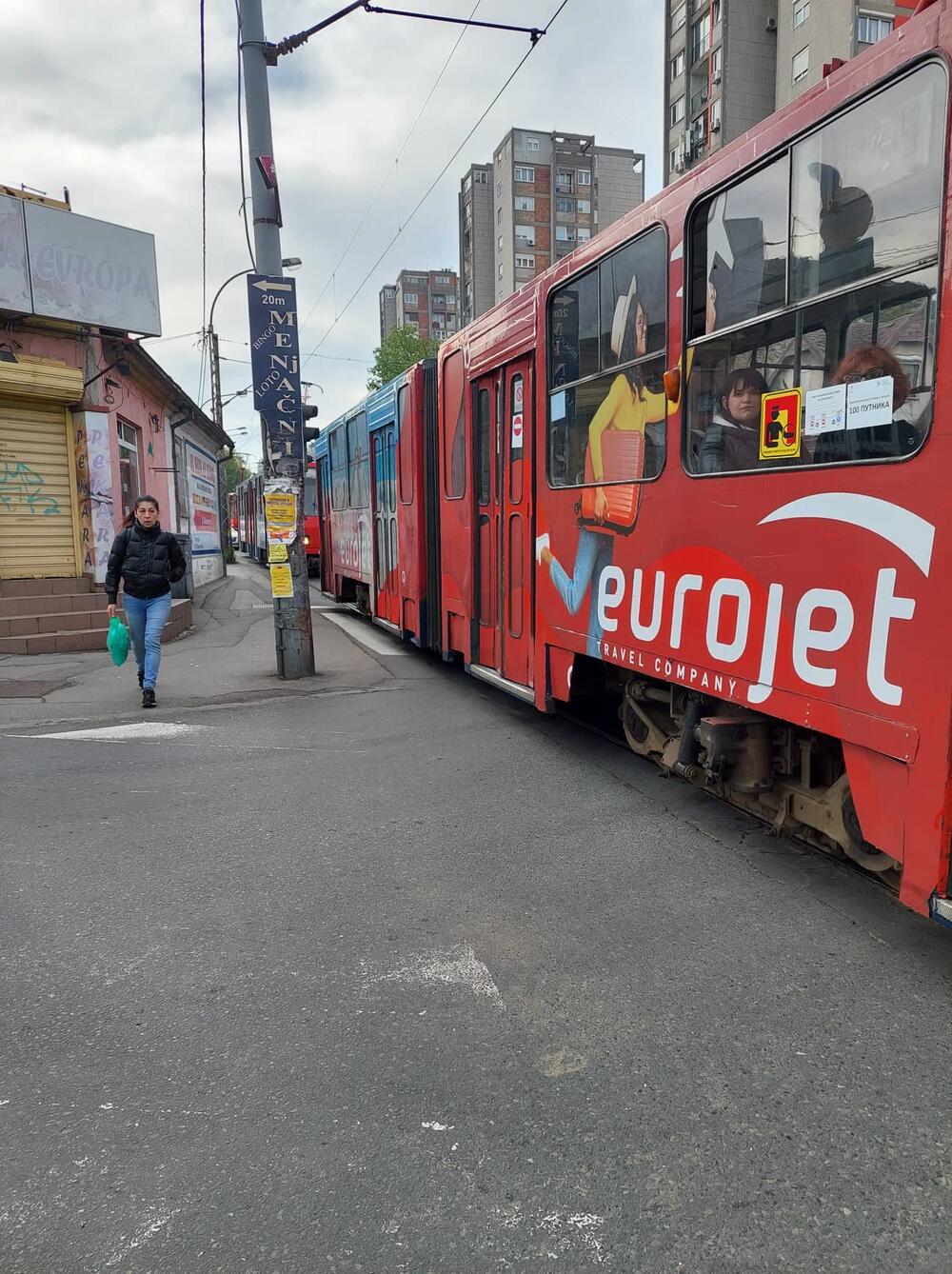 Stvara se velika gužva jer tramvaj blokira saobraćaj. Došlo je do svađe između vozača, a policija je izašla na teren.
