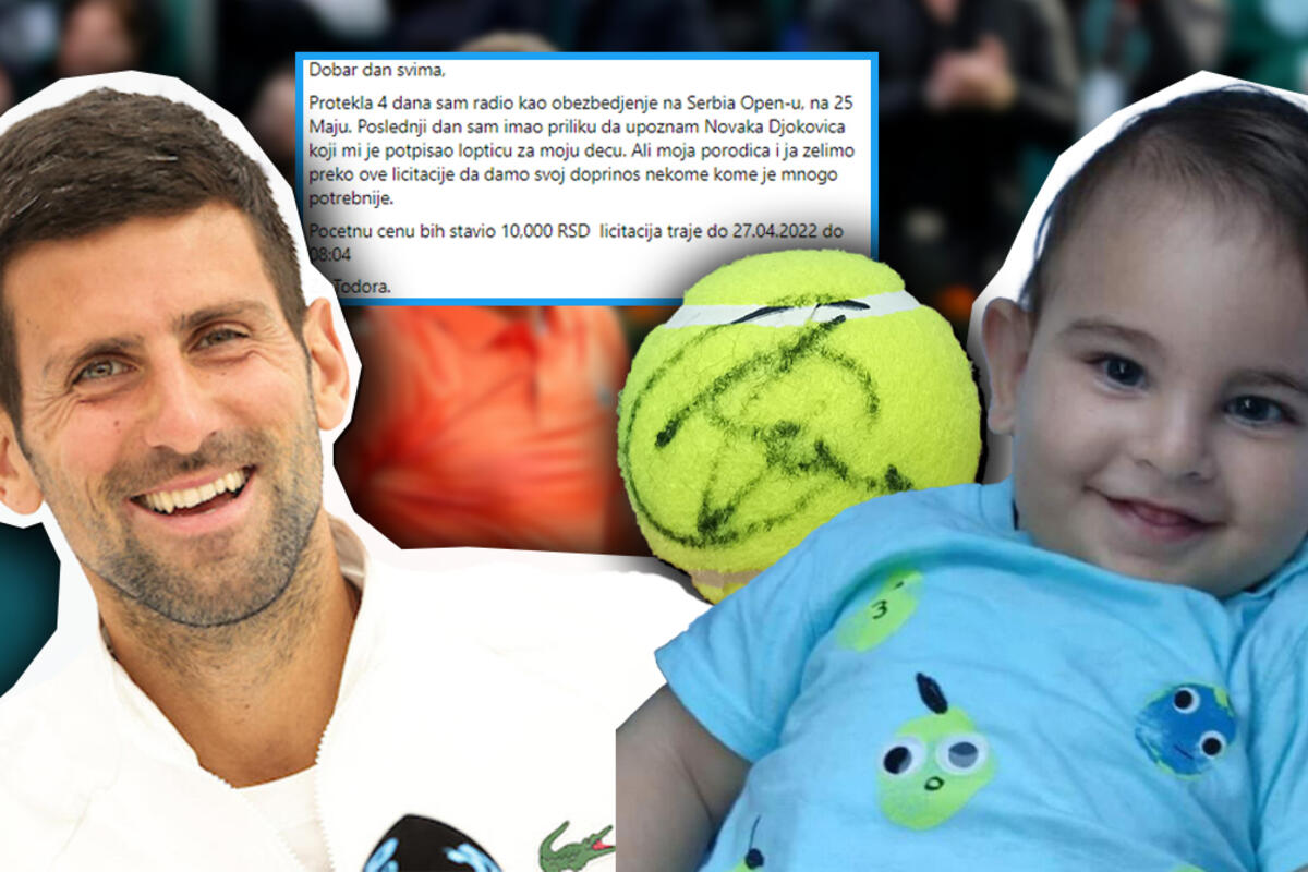 "Dobar dan svima, protekla 4 dana sam radio kao obezbeđenje na Serbia Open-u, na 25 Maju. Poslednji dan sam imao priliku da upoznam Novaka Đokovića koji mi je potpisao lopticu za moju decu. Ali moja porodica i ja želimo preko ove licitacije da damo svoj doprinos nekome kome je mnogo potrebnije. Početnu cenu bih stavio 10,000 RSD licitacija traje do 27.04.2022 do 08:04. Za Todora", navodi se u Fejsbuk objavi.