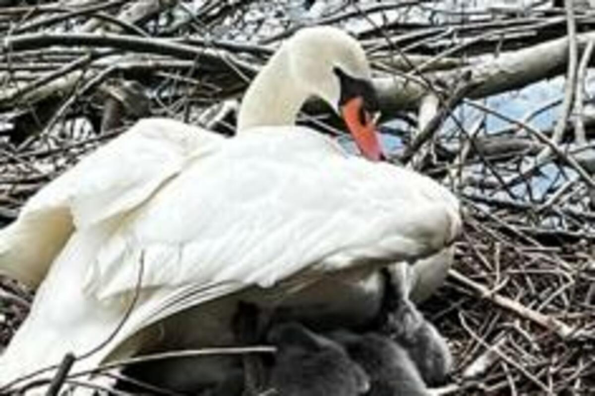 Na reci Savi, u bloku 45, ''uhvaćena'' je mama labudica kako sklupčano sedi sa malim labudićima.