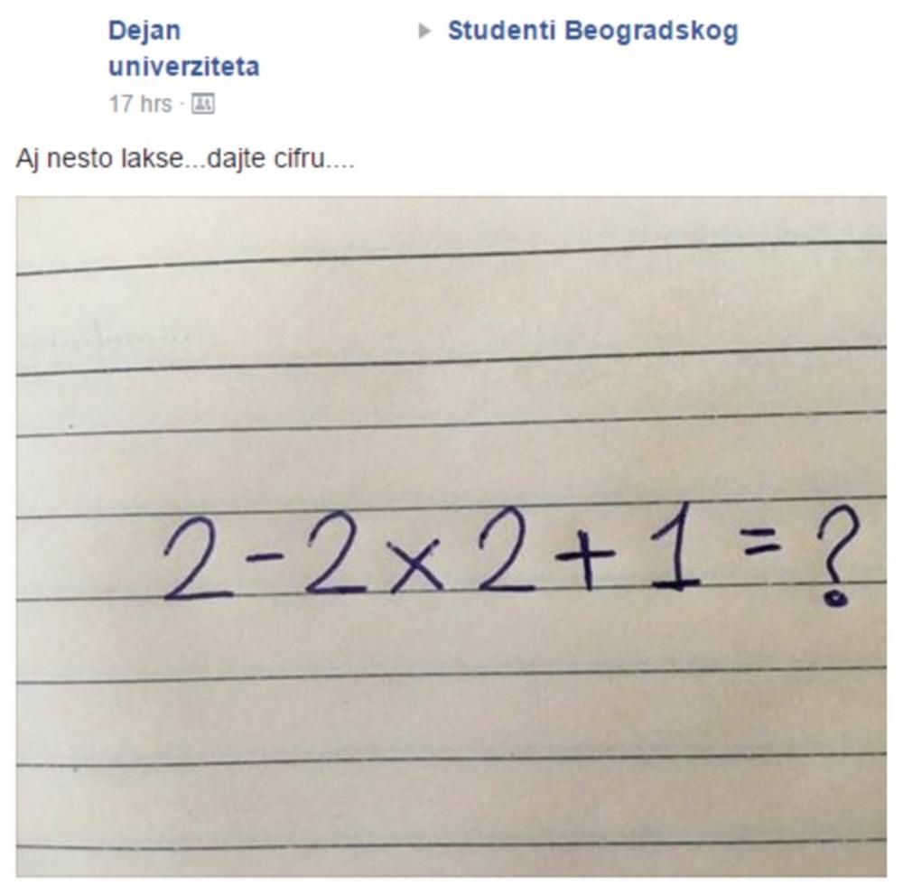 Jedan zadatak podeljen na Fejsbuku, koji se rešava u nižim razredima osnovne škole, podelio je studente beogradskog univerziteta. Naizgled laka računica zadala je glavobolju akademcima, pa su se mnogi zapitali kakva nam je budućnost, ako studenti ne umeju da reše ovako lak zadatak.