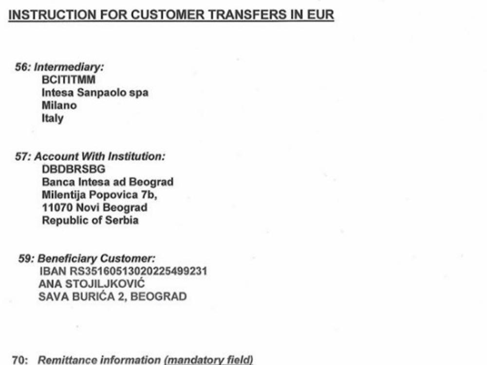 - Prilažemo predračun klinike Atlas i dinarski i devizni račun kod Banke Intesa.