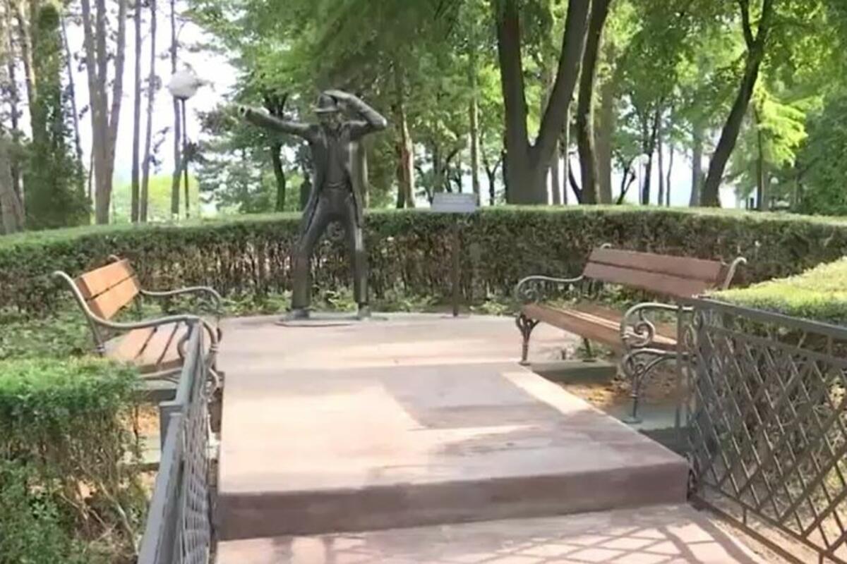 Skulpturom je prikazan lik Šurde iz serije "Vruć vetar", kako u zanosu igra sirtaki, piše RTS.