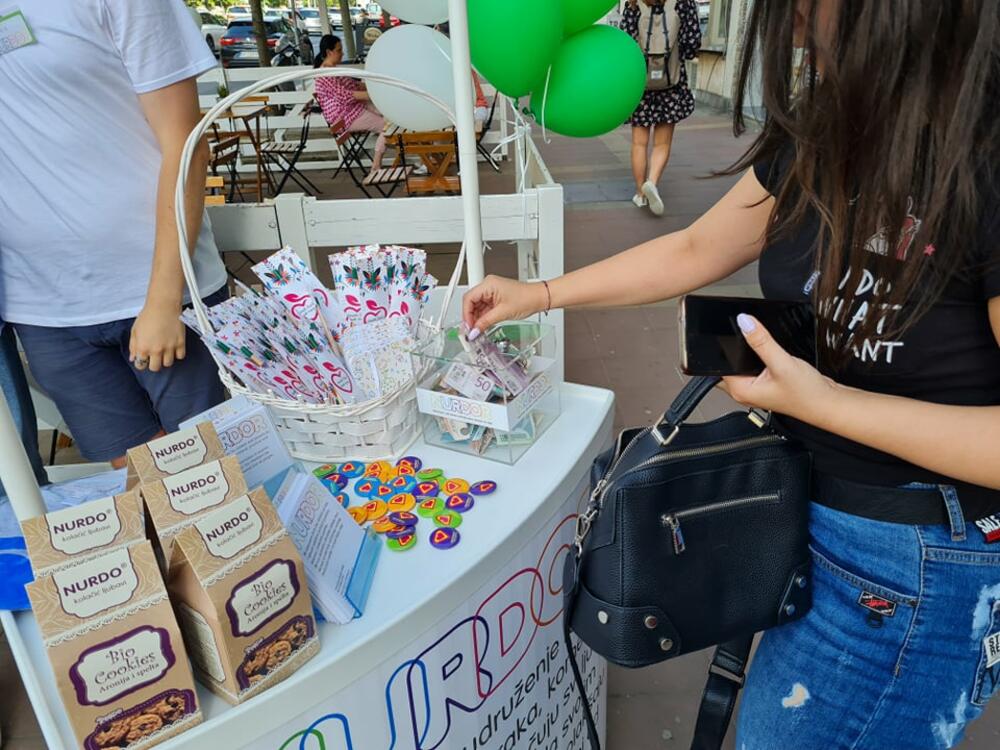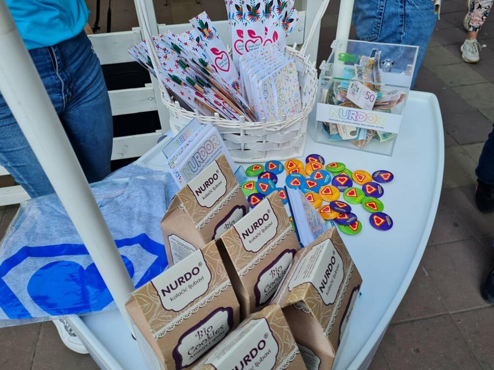 "U bolnici sam upoznao zapravo i samo udruženje. Imao sam folikularnu leziju štitne žlezde. Imao sam 15 godina i bio sam najmlađi zabeležni slučaj. Imao sam operaciju na dečijoj onkologiji zbog same vrste tumora bilo je malo nezgdno da se odredi gde ću se operisati. Bolest je bila tipična za starije. Krenuo sam prvo da volontiram u kancelariji. Sarađujemo sa dosta udruđenja kao i sa "Beogradskim maratonom". Manje više svake godine dolazim ovde, poslastičarnica nam ustupa mesto. Umesto da zarade novac, oni te donacije ustupaju NURDOR-u ", ispričao je Dušan.