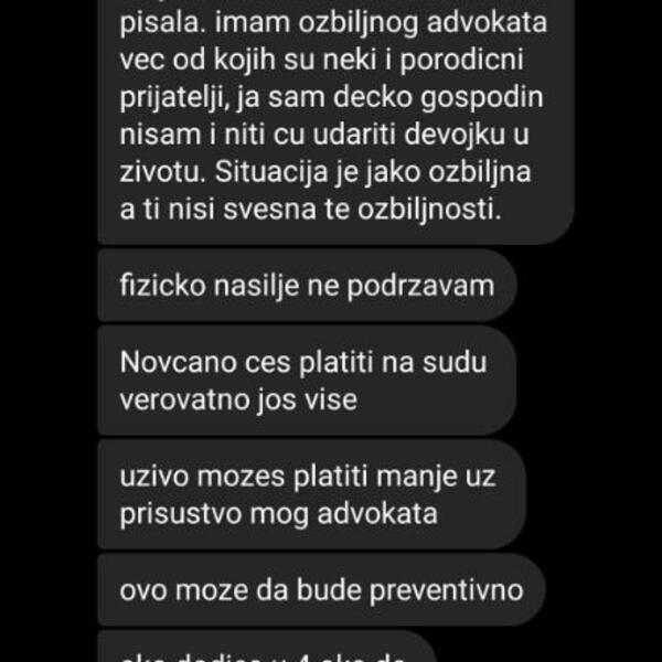 Dečko se toliko osetio oštećenim da joj je čak i pretio advokatima