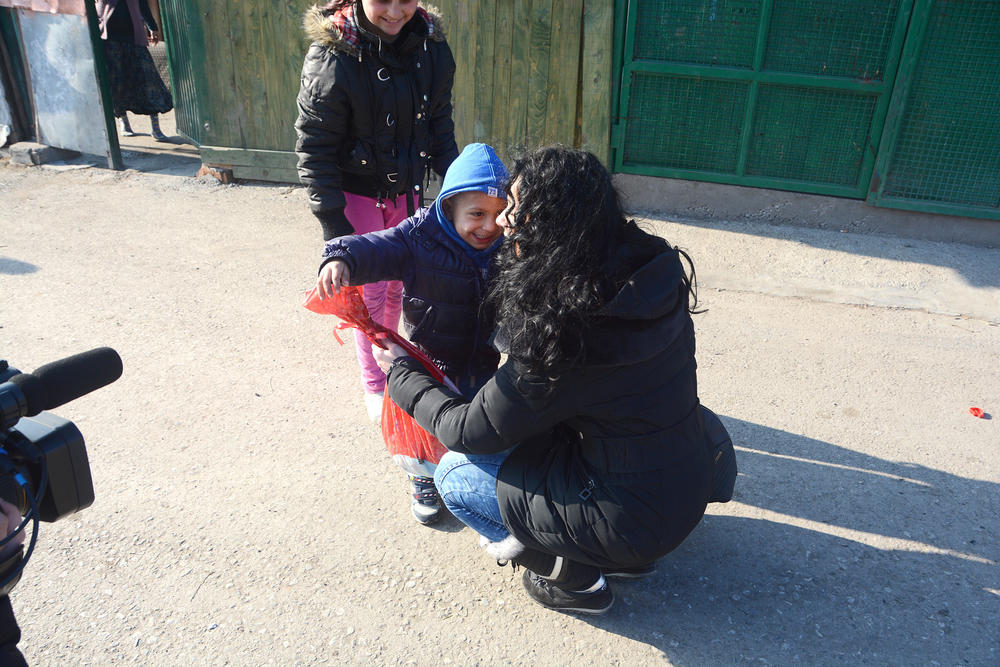 Zaputili smo se u naselje "Mali Leskovac" i tamo najpre odneli paketić Elizabeti, devojčici koja je učestvovala u našoj anketi. Kad je čula da je tražimo istrčala je ispred kapije. Ugledala je paketiće i sa osmehom potrčala ka nama - u čarapicama. Zagrljaj je umesto reči rekao hvala.