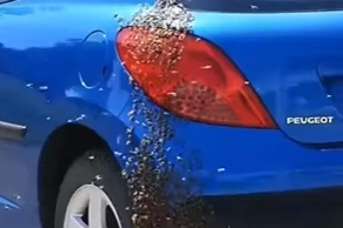 Na snimku se vidi da se roj pčela okupio oko pežoa, dok neke od njih lete okolo i m+po nekoliko metara. Sudeći po komentarima ljudi tvrde da je iza branika automobila uletela matica, gde je ostala zarobljena, a pčele su došle za njom, da je izbave.