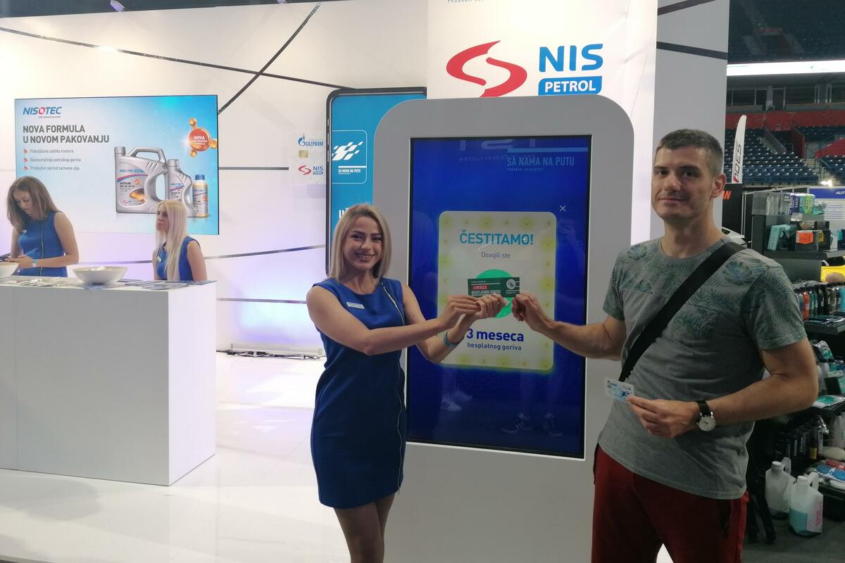 Najvrednija nagrada NIS-ove poklon aktice, tri meseca besplatnog goriva u vrednosti od 49.200 bonus poena na „Sa nama na putu“ kartici lokalnosti, otišla je u ruke Aleksandra Stokića iz Pančeva. Aleksandar je nagradu osvojio na štandu NIS-a, u okviru Sajma korišćenih vozila, koji je održan od 2. do 5. juna u beogradskoj Areni. Tokom trajanja manifestacije, svi zainteresovani posetioci štanda kompanije mogli su da učestvuju u poklon akciji, a svaki učesnik dobio je neki od poklona koji je ovim povodom pripremio NIS.