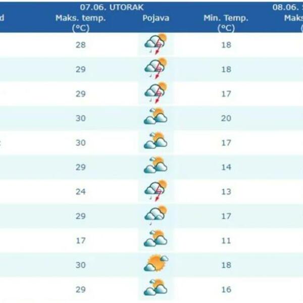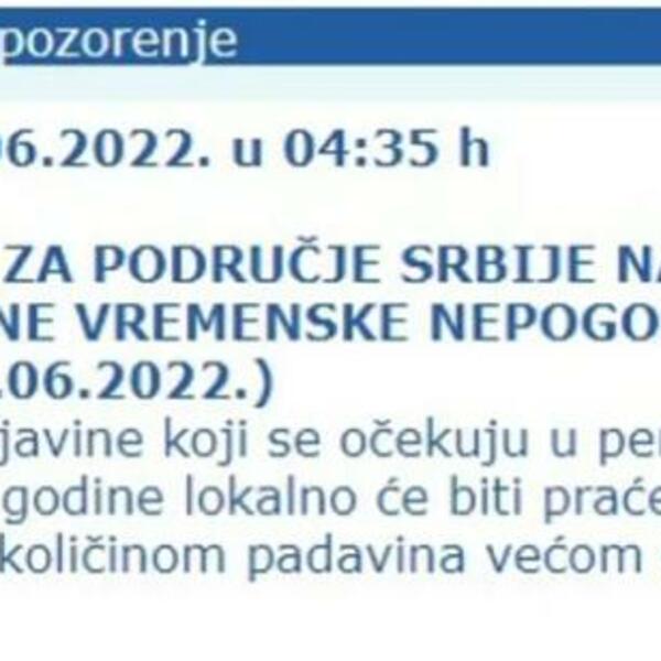 Republički hidrometeorološki zavod izdao je novo upozorenje koje se odnosi na period od 7. do 10. juna.