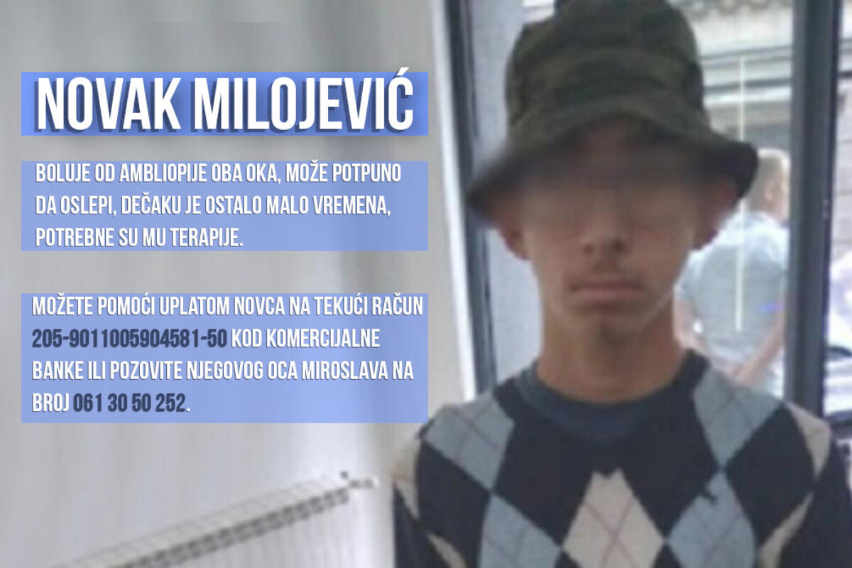 Malom Novaku Milojeviću stanje je ponovo pogoršano. Ovaj dečak (13) od prvog razreda bori se sa teškom bolešću očiju.