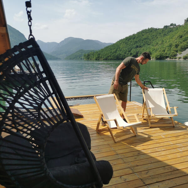 „Kao dete koje je mnogo vremena provodilo na vodi, želeo sam da za sebe, porodicu i drugare napravim neki mali splav kako bi imali gde da boravimo. U početku uopšte nije bio plan da se bavim turizmom. U međuvremenu, pojavila se korona koja je svima stavila prst na čelo, došlo je to neko čudno vreme. Krenuli smo sa iznajmljivanjem tog jednog splava koji se pokazao kao pun pogodak. Potražnja je bila zaista ogromna, tako da smo proširili kapacitete. Pravio sam jednu po jednu i došao do toga da sada imam četiri kućice na jezeru, deo se izdaje, a drugi deo je za porodicu“, rekao je za RINU Radisav Mićović iz Bajine Bašte.