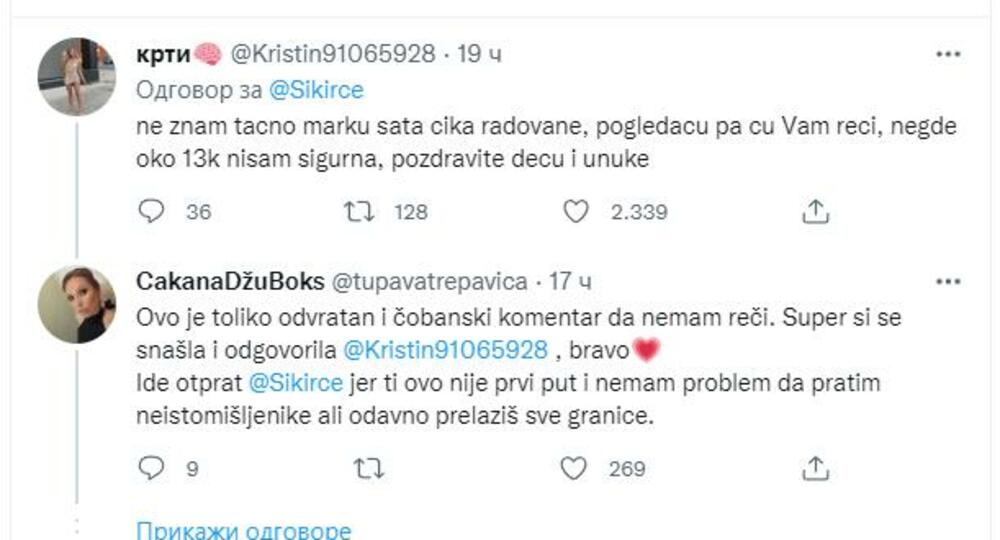 Naime, sporni komentar ostavio je tviteraš koji se predstavlja kao Radovan Spasojević, a koji je sasvim očigledno duplo stariji od ove maturantkinje, te čak ima i decu njenih godina. Upravo zato je njegova opaska naišla na žestok bes tviteraša, a mnogi su ustali u Kristininu odbranu. No, nažalost, bilo je i onih koji su podržali ovakav način ophođenja.