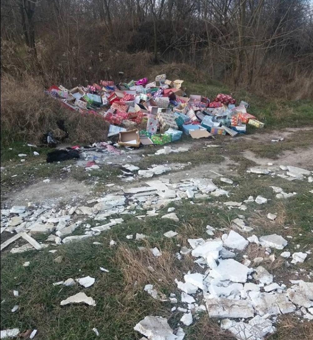 Na obali Velikog Bačkog kanala, kod Staparskog mosta uslikano je na stotine praznih kutija humanitarne pomoći, koje su poslala deca iz Nemačke za Novu godinu i Božić.