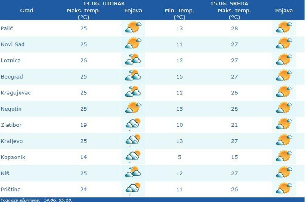 U Srbiji će danas biti pretežno sunčano i malo svežije, a samo u planinskim predelima južne Srbije uz promenljivu oblačnost ponegde je predviđena kratkotrajna kiša.