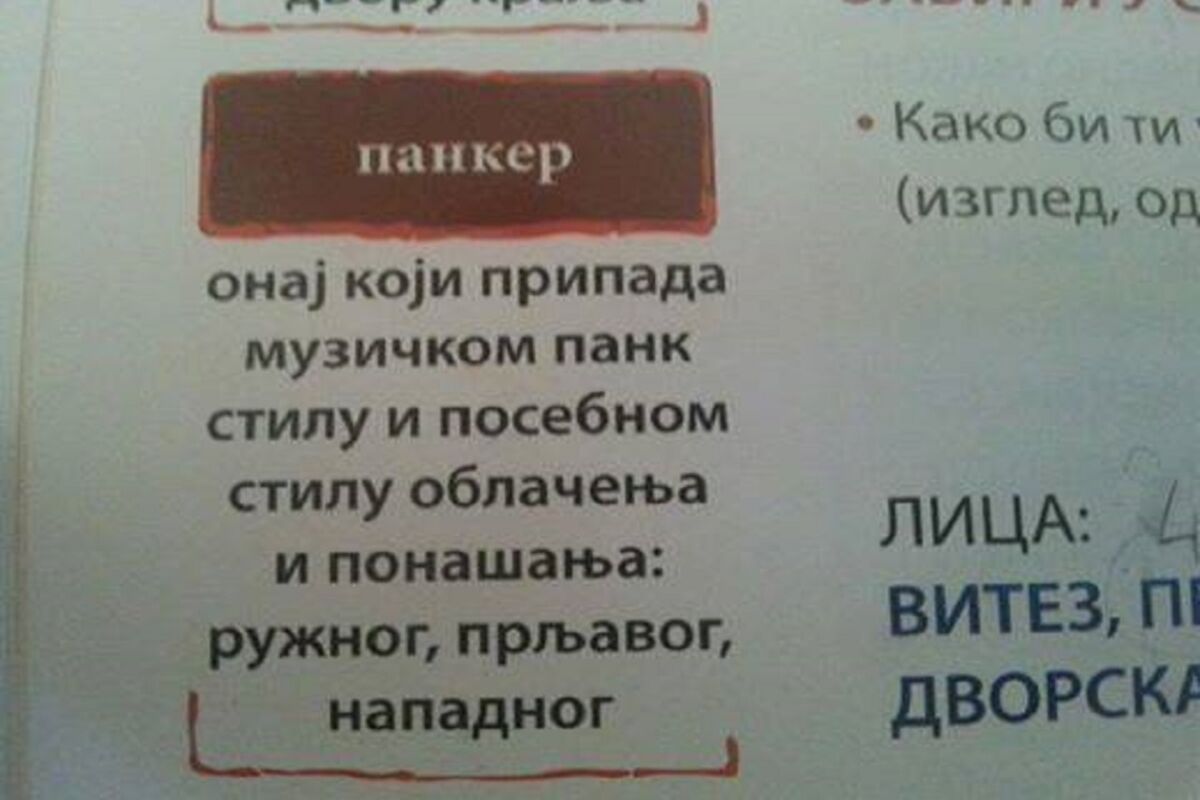 U čitankama se pojavila zanimljiva definicija koja je pokušala klincima u četvrtom razredu uče šta su pankeri.