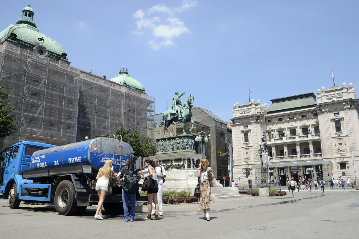 Tokom predstojećih tropskih dana kada će, prema prognozama meteorologa, jutarnja temperatura u Beogradu biti od 20 do 25 stepeni, a dnevna od 34 do 37 Celzijusa, građanima će na raspolaganju biti cisterne sa pijaćom vodom na nekoliko lokacija u prestonici.