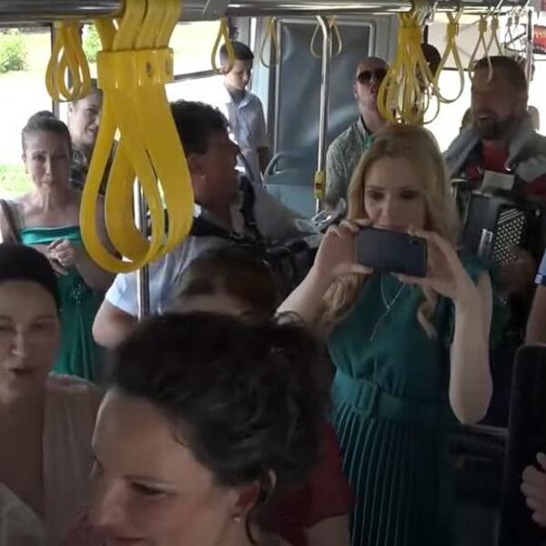 U autobusu je bilo malo tesno, ali pre svega veselo. Unutra kumovi, najbliži rođaci, muzika, fotografi i snimatelji, dok su ostali svatovi sve to pratili sa stanice, odnosno ispred autobusa.