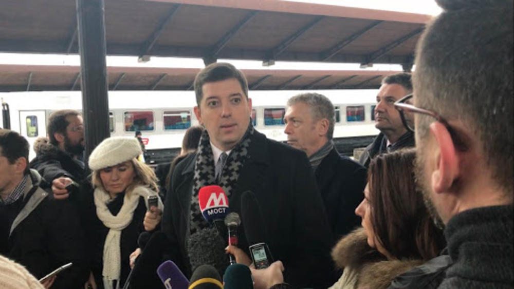 Direktor vladine kancelarije za Kosovo i Metohiju, Marko Đurić je na samom početku obraćanja poželeo srećnu pravoslavnu Novu godinu svima koji slave i istakao da je ovo savršen početak Nove godine ovde na železničkoj stanici u Beogradu.
