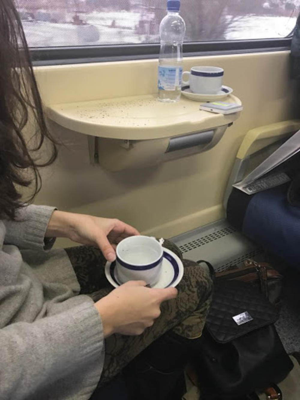 Atmosfera u vozu je radna, a naša koleginica je uspela i da napavi pravi mali incident kada je prosula čaj.