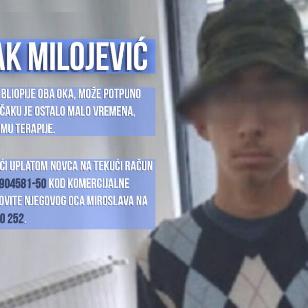 Miroslav Milojević, samohrani otac iz Bora, kaže da njegov trinaestogodišnji sin Novak, više ne može da čeka. Naime, uplašen je da će zbog dve ozbiljne bolesti očiju, ukoliko uskoro ne ode na operaciju, dečak će ostati bez vida. I ima samo jednu molbu, da mu pomognemo da do operacije dođe što pre, jer Novak ne može da čeka tih godinu dana, kada mu je operacija zakazana.
