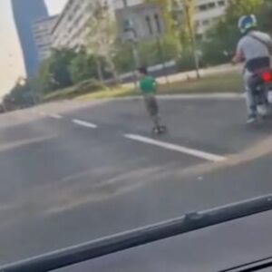 Name, na društvenim mrežama pojavio se video na kom se vidi kako žena, ne samo da vozi trotinet po kolovozu, prelazi tri kolovozne trake ispred automobila i za sobom vuče psa.