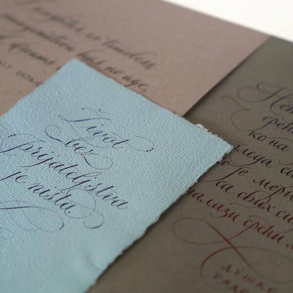 - Osim tradicionalne kaligrafije postoji sa druge strane i moderna kaligrafija sa kojom se ja bavim već oko deset godina. Koperplejt pismo se razlikuje od tradicionalnog, piše se pod određenim uglom i koriste se materijali koji su različiti – objašnjava umetnica Stojković.