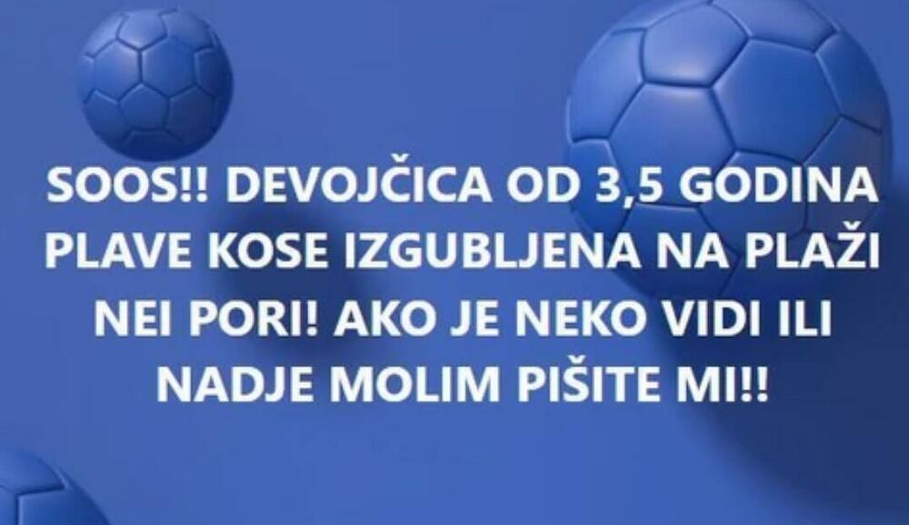 "Sos! Devojčica od 3,5 godine, plave kose, izgubljena na plaži Nei Pori! Ako je neko vidi ili nađe, molim pišite mi!"