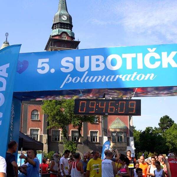 Subotica, plus 35 stepeni celzijusa, beton i više od 1500 trkača, obeležili su protekli vikend u gradu! U nedelju je održan jubilarni 5. Subotički polumaraton, pod sloganom „Trči kroz istoriju”, koji je okupio veliki broj trkača iz čak 13 zemalja sveta. Takmičari su trčali na tri distance i to na 5, 10 i 21 kilometar, a na kraju trke čekalo ih je zasluženo osveženje uz voće i druge poslastice, od kojih je svakako najveća - sama medalja!