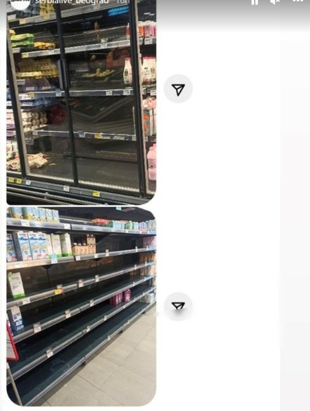 Ovih dana primećeni su prazni rafovi dugotrajnog mleka. Na društvenim mrežama osvanule su fotoigrafije iz pojedinih supermarketa u Beogradu. U jednom marketu su čak ispraznili i frižider sa svežim melkom, a prema rečima građana, ostalo je još onog sa najvišom cenom.